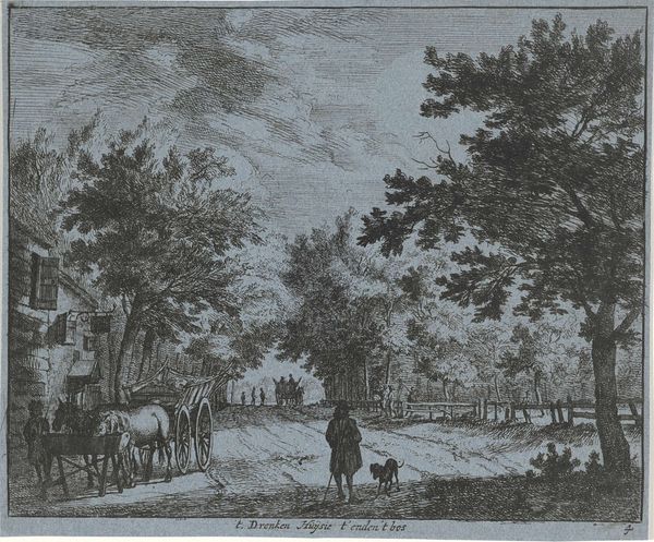Jan Vincentsz. van der Vinne etched "Hunting Party Resting by a Fountain" in the late 17th or early 18th century. Dominating the right side of this tranquil scene is an elaborate fountain, crowned with a sculptural element. Fountains, like those found in classical gardens, are more than just decorative; they symbolize life, purity, and the transformative power of water. From ancient Roman baths to Renaissance gardens, the image of water spouting from stone has always signified civilization controlling and celebrating nature. It is a motif that echoes through time. Consider how the symbolism of water, so central to life, takes on new forms, even today. The fountain's design, and the very act of the hunting party pausing at it, are powerful gestures. They conjure a shared human experience of finding solace and rejuvenation in nature. We see here a continuous cycle, where symbols of life and renewal are perpetually reimagined.