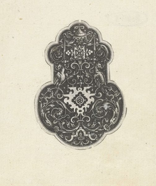 Editor: This intricate drawing, "Banknote motif" by Cyrus Durand, created between 1819 and 1847, is quite striking. The fine lines and symmetrical design feel both delicate and secure. How would you interpret its visual language? Curator: It’s fascinating how Durant intertwines nature and geometry. Notice how the central star within the hexagon mimics a stylized flower. Consider, too, the flowers and leaves; in what ways do they soften what might otherwise be a purely mathematical emblem? It speaks of value – both the intrinsic worth of nature, and the artificial value of currency. Editor: I hadn’t thought about the value systems being connected! Are there other symbols hidden in plain sight? Curator: I would ask you to look closely. Do you perceive any additional emotional or cultural meanings embedded within these deliberately constructed visual elements? The radiating lines, the recurring floral motifs – do these evoke any particular feelings or associations for you, particularly considering the piece's purpose? Editor: The radiating lines almost create a sun-like impression, conveying themes of growth or maybe prosperity... It's amazing how such a functional object can hold so much symbolic weight. Curator: Indeed! Currency is designed to inspire confidence, reliability, and trust. Durand utilizes established visual tropes – symmetry, natural imagery – to project these values. And these tropes, remember, carry echoes of previous artistic eras. What has struck you most about how the design merges ideas from different times? Editor: How the naturalistic, flowing floral elements ground the precision and rigid structure of the geometric shapes. Curator: Yes, the integration presents a subtle, yet powerful narrative. An enduring blend of tradition and innovation. Thank you for prompting these rich associations; it gives this little emblem new meaning for me.