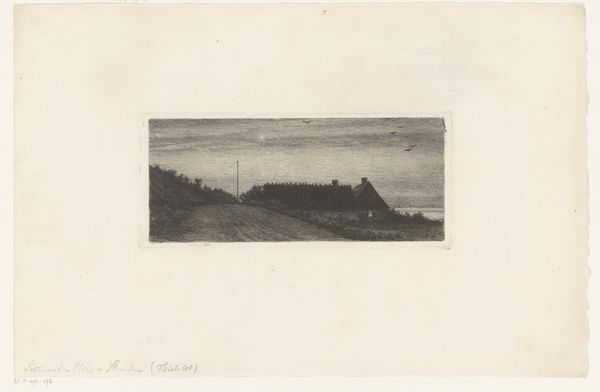 Carl Bloch created this etching, "Landweg met wandelende dame en kind," during a period of significant social change in Europe. The 19th century saw a rise in industrialization and urbanization, yet Bloch often turned to more pastoral scenes. In this quiet landscape, we see a woman and child walking along a country road. There's a sense of solitude, but also of resilience. The figures, while small, stand against a vast backdrop of fields and sky. Consider the role of women during Bloch's time. Often confined to domestic roles, here the woman is out in the world, perhaps suggesting a quiet strength or an untold narrative of daily life and independence. Bloch's choice to depict such a scene invites us to reflect on the experiences of ordinary people, particularly women, within the changing landscape of 19th-century Europe. It gently prompts us to find value and depth in the quiet moments of everyday life.