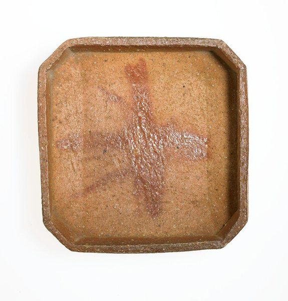 Editor: Here we have Kitaōji Rosanjin’s “Iga Plate,” made around the 20th century using earthenware. It's small and rather unassuming, but I'm fascinated by the raw, almost accidental quality of the glazing. How do you interpret this piece, particularly considering Rosanjin's background? Curator: Rosanjin was obsessed with materiality. Looking at this plate, think about the process, the labor involved. He moved away from perfect porcelain forms towards celebrating the imperfections inherent in earthenware, specifically Iga ware with its origins in functional objects. The cracking and pooling of glaze aren’t flaws; they’re evidence of the firing process. What does that say about Rosanjin's rejection of traditional hierarchies between "high art" and craft? Editor: That’s interesting. So, the value isn’t just in the finished product, but in showcasing the means of production, almost like an unintentional record of the kiln's environment? It's far removed from flawless ceramics, where the maker strives to hide the hand. Curator: Precisely! Consider the historical context. Modernism questioned established artistic boundaries. Rosanjin elevates a humble material and a functional form by embracing chance, drawing attention to the agency of the materials themselves, to the transformative process of firing. Editor: It seems he’s suggesting the clay and the fire are active collaborators in creating the final piece, a step removed from emphasizing his own artistry, blurring distinctions between artist and material, which is a bold move, considering that, as I now realize, the modern period of Japan was about to enter one of its most difficult times in history. Curator: Exactly. Paying attention to the materials, to labor, brings into view the historical backdrop. These details often remain hidden in traditional interpretations of ceramics. So what have you learned? Editor: I’ve definitely learned to look beyond aesthetics and appreciate the material story embedded in the art object, and also what these materials tell us about the cultural climate it came from. Curator: And hopefully, that's changed how you will perceive all artwork going forward.