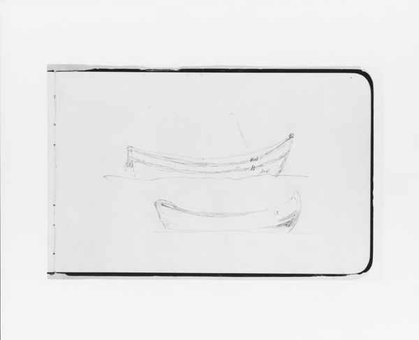 Editor: Here we have "Sketches of Canoes (from Sketchbook X)" by William Trost Richards, created in 1885 using pencil. The quick, almost frantic lines give it such an ephemeral feel, like a fleeting moment captured on paper. What jumps out at you when you look at it? Curator: It's a dance, isn’t it? A scribble that hints at hulls and horizons. For me, it evokes the sensory overload of being near the sea – the smell of salt, the rocking rhythm, the visual chaos that eventually resolves into understanding. I see a restlessness, a seeking, within those lines. Are the boats moored or preparing to launch, do you think? Editor: Hmm, that’s a good question. They feel poised, expectant. Like they're waiting for a story to begin. Curator: Exactly! And the emptiness around the boats becomes significant, right? Richards doesn't fill in the blanks. He hands the narrative over to us, the viewers. What kind of stories are conjured when you see them ready to depart? Editor: Maybe a journey into the unknown, a sense of adventure. The minimalism sort of amplifies the possibilities. So, is it fair to say the “unfinished” nature of this work, the sketched quality, is actually its strength? Curator: Absolutely. The sketch holds potential in ways that a fully rendered painting sometimes can’t. It is pregnant with untold possibilities. A dance on the water yet to happen. Richards is offering an invitation to participate, you know? What a generous act! Editor: That’s given me a whole new perspective on appreciating the power of the preliminary. Curator: And me! Thanks for steering our own little canoe into uncharted waters today. It always tickles me how something incomplete can feel like everything.
