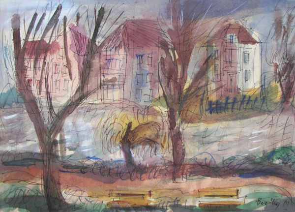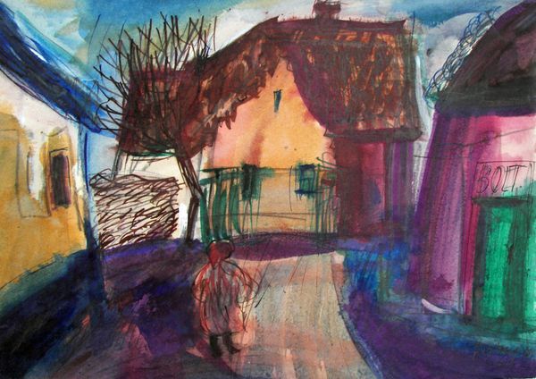 Vajda Lajos made *Pettyegetett Ház* in 1936, and it’s all about the playful possibilities of paint. Look at how the colors aren’t just laid down, but kind of coaxed into being, like he’s whispering to the surface. The texture, especially those dreamy dots, gives the whole thing a kind of cosmic feel, like the house is part of a larger universe. The way the colors bleed into each other makes it feel like everything’s in motion, not fixed. See that little door, how it’s kind of swallowed up by the dark? It’s like the house is breathing, changing, never quite settled. Vajda’s work reminds me a bit of Paul Klee, with that same sense of childlike wonder and a love for the unexpected. It's like both artists invite us to see the world not as it is, but as it could be.