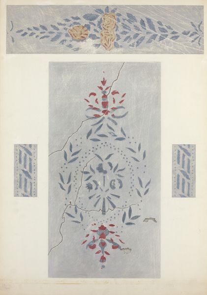 Ray Holden created this stencilled wall detail, using watercolor and graphite. It is unknown when he made it, but he lived from 1855 to 1995. The artwork reflects a revival of interest in folk art and traditional crafts that occurred in the United States during the late 19th and early 20th centuries. Stencil designs like this one were often used to decorate homes in rural areas, offering an affordable way to add visual interest to interiors. The geometric and stylized floral motifs, rendered in muted tones, speak to the aesthetic preferences of the period, which valued simplicity and handcrafted quality. The existence of such a piece invites us to consider the role of art institutions in preserving and valorizing everyday forms of creative expression. Researching the patterns and techniques of stencilled wall decorations from the era can provide further insights into the cultural significance of this artwork. This allows for a deeper understanding of its historical context.