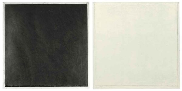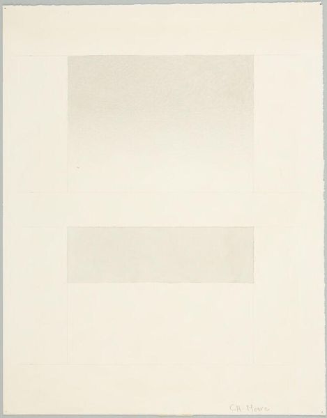 Editor: This is Richard Serra’s, "Weight and Measure." It’s a minimalist print, stark and powerful, almost like two voids pressing down on the page. What do you see in this work? Curator: I see a challenge to patriarchal structures, through its deliberate use of industrial materials. Serra, known for his large steel sculptures, here reduces form to its essence. How does this contrast impact your understanding of power and presence? Editor: It's interesting to consider the industrial versus the intimate, the monumental reduced to paper. The title suggests a system of valuation too, doesn't it? Curator: Precisely. Who decides what carries weight, what measures up? Serra’s work makes visible these systems, inviting us to question established hierarchies. Editor: I never would have considered it that way. Thanks for expanding my perspective. Curator: My pleasure. It is essential to unpack these works through the lens of social critique.