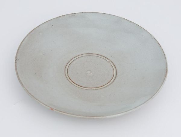 Editor: We're looking at Otto Lindig's "Saucer," of unknown date, at the Harvard Art Museums. It's deceptively simple, almost meditative in its form. What do you see as the core elements defining this piece? Curator: I am drawn to the purity of its geometry. The interplay between the large circle of the plate and the smaller, recessed oval creates a subtle tension. Note also the restrained palette; the barely-there blush along the rim is a critical accent. Editor: It's interesting how such a functional object can become a study in form and color. I hadn't considered the subtle blush, but it does add a layer of complexity. Curator: Precisely. Lindig challenges us to look beyond utility and appreciate the intrinsic aesthetic qualities of the ceramic medium itself. A successful exercise in pure form. Editor: I will definitely be seeing this with new eyes now. Thank you!