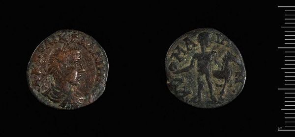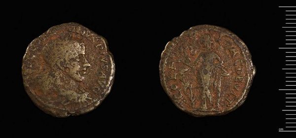 Editor: This is a Tetradrachm of Alexandria under Diocletian. It's incredible how this coin, despite its age, retains such clear imagery. What strikes you when you examine its composition? Curator: The coin presents a fascinating study in relief. The incuse portraits, rendered with precision, demonstrate the engraver’s mastery. Note also the die axis, a crucial element in numismatic analysis. Editor: So, the relationship between the two sides is significant? Curator: Precisely. The alignment and the varying depths of the impressions invite us to consider the artist's choices in imbuing the coin with meaning, through form and structured relation.