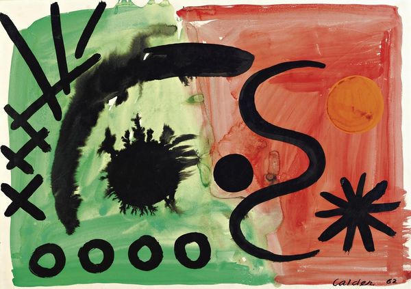 This watercolor painting, "Yin & Yang on Yellow" was made by Alexander Calder in 1967. There is something so joyous about the way that Calder uses color and form in this work, and it feels like an invitation to play. Look at that yellow ground, thinly washed with a big brush, then those confident black lines and red and blue shapes floating on top. It’s a balancing act, right? Like those amazing mobiles he’s known for. Calder isn’t trying to hide his process here. The paint is thin, almost translucent in places, and you can see the brushstrokes building up the forms. The black lines have a life of their own, and their edges are rough and uneven and sometimes spidery. This playful experimentation reminds me of Joan Miró. Both artists embraced spontaneity and chance in their work, allowing the materials to guide them. Ultimately, the relationship between form and ground, the balance between chaos and order, is what makes this piece so engaging. It’s a reminder that art can be both serious and playful, and that meaning can be found in the most unexpected places.