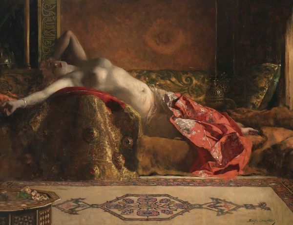 Nelson Shanks made this painting, Sequins, with oil on canvas. Shanks had a way of using paint that makes you think about the process itself, like, how does all that detail emerge from a bunch of brushstrokes? Looking at the blue shirt, you can see how the sequins have been built up with layers of paint, little dabs and strokes that catch the light differently. I think it’s interesting how he uses these small marks to give the fabric a shimmering quality, like light reflecting off something real, but in a way that is very obviously paint. The slightly abject pose reminds me of Lucian Freud, but the classical technique is more like Ingres. It's almost like Shanks wants to keep all options open, and maybe that's what painting is all about, after all.