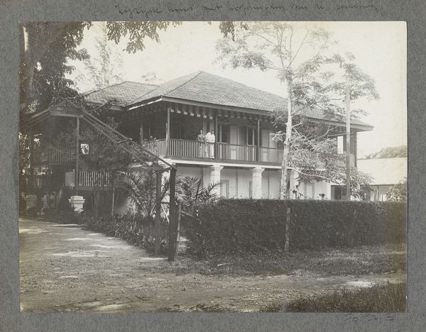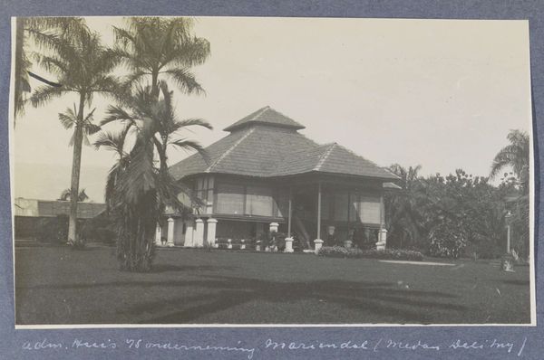 Isken created this photograph of dwellings near the Kertosono road for sugar factory workers in Kediri, Java. The muted tones and measured composition evoke a sense of quiet observation. The photograph is structured through horizontal layers, from the dusty foreground to the neat hedges and the row of houses beyond. The houses are simple structures, their white walls punctuated by dark window frames and shadowed recesses, suggesting a play of light and depth. The dense trees on the right and the palms on the left act as framing devices. Note how the artist uses a semiotic system of signs to interpret the environment. The manicured lawns and uniform architecture can be interpreted as symbols of colonial order. The artist captures a moment where the order and the exotic intertwine, reflecting the complex dynamics of colonial spaces and the imposition of external structures. The photograph’s structure and tonal range invite us to consider the underlying social structures and how they shape both the landscape and its inhabitants' lives.