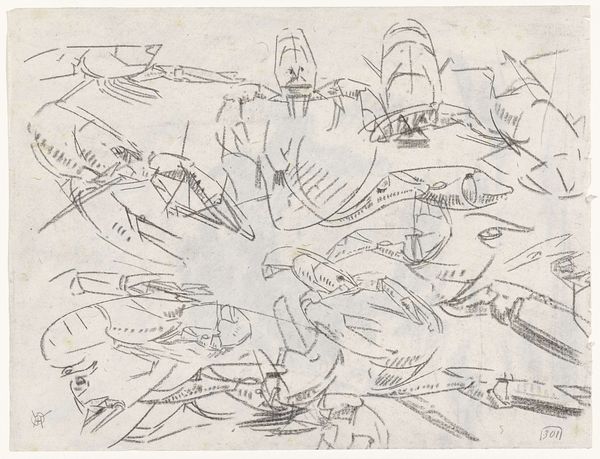 Gerrit Willem Dijsselhof created this drawing, Kreeften, with a graphic medium on paper. At first glance, one sees numerous crayfish sketched hastily. But it is the symbolic weight of the crayfish itself that demands our attention. The crustacean, found in the depths, has long been linked to the subconscious. Think of the zodiac sign Cancer, tied to the moon, the tides, and the realm of dreams. These associations tap into our primordial fears, our subconscious recognition of the hidden and unknowable. Even in ancient Roman mosaics, marine creatures were emblems of wealth and mystery. Here, Dijsselhof conjures the same deep-seated associations. They resonate even today, speaking to our understanding that what lies beneath the surface is often more profound than what is visible. The creatures elicit both curiosity and a touch of unease, linking us to our ancestors, who looked to the sea with similar wonder and apprehension.