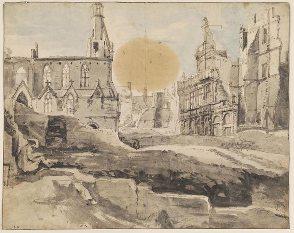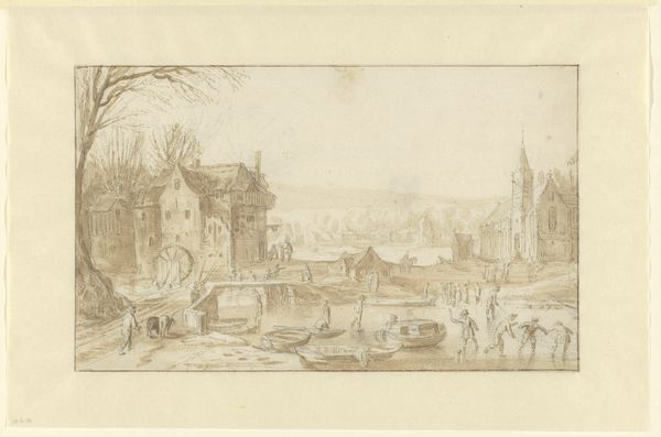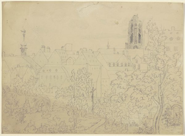 Victor Müller’s sketch, “City on a River, with Anglers in the Midground,” offers a glimpse into the artist’s perception of urban life during the mid-19th century. The sketch captures a serene moment by the river, contrasting with the looming presence of the city's architecture, including what appears to be a cathedral. Müller, positioned within a rapidly industrializing Europe, seems to be reflecting on the relationship between nature and urban development. It is as if he's questioning what is lost and what is gained as cities expand. The figures of the anglers, small and contemplative, emphasize a personal connection to the natural world, offering a quiet counterpoint to the imposing structures in the background. The choice of a sketch, with its raw and immediate quality, adds to the intimacy of the scene, inviting us to reflect on the evolving landscape and our place within it. It’s a snapshot of a society on the brink of transformation, capturing a yearning for simpler times amidst progress.
