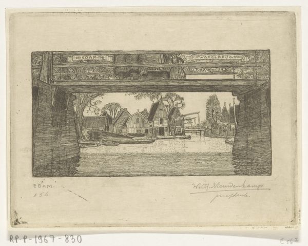 Johann Georg Hertel created this landscape with wooden bridge presumably around 1750, using etching. The composition divides the scene into contrasting halves. On the left, a natural, somewhat chaotic arrangement of rocks and foliage, while on the right, a man-made architectural structure stands, ruined yet ordered. The bridge itself acts as a visual connector, a precarious link between nature and civilization. The lines are finely rendered, with a remarkable attention to detail. Notice how the bridge's instability, suggested by its sagging form, could symbolize the transient nature of human endeavors against the timeless backdrop of nature. The etching technique, with its delicate lines, enhances this sense of fragility. This interplay between decay and persistence, structure and fluidity, invites reflection on the shifting boundaries that define our relationship with the environment.
