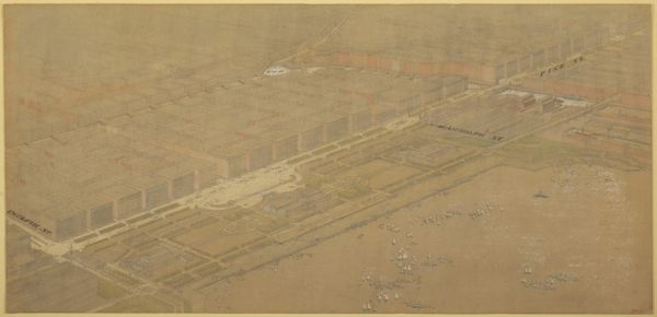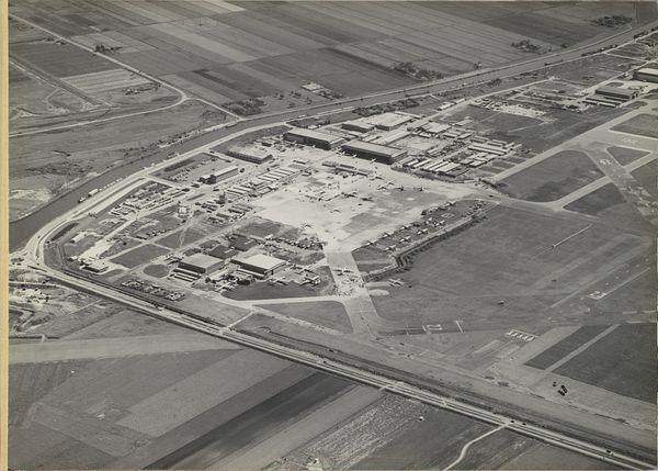 This black and white photograph, taken by Fototechnische Dienst K.L.M. in 1928, captures the construction of a lock and drainage sluices near Den Oever. It’s a kind of choreography of human endeavor. I’m drawn to the aerial perspective and the way it flattens the landscape, turning the construction site into an almost abstract composition. Look at the textures, how the rough, uneven surfaces of the land contrast with the smoother areas of water. The dark, blocky shapes of the buildings and structures punctuate the scene, creating a rhythm across the frame. I love the granular quality of the image, the imperfections that give it a sense of authenticity and immediacy, like a raw, unedited mark on a canvas. This photograph reminds me of Bernd and Hilla Becher’s typologies of industrial structures, or even some of Ed Ruscha’s deadpan photographs of buildings and parking lots. But what’s unique here is the combination of documentation and abstraction, a reminder that art is as much about seeing as it is about knowing.