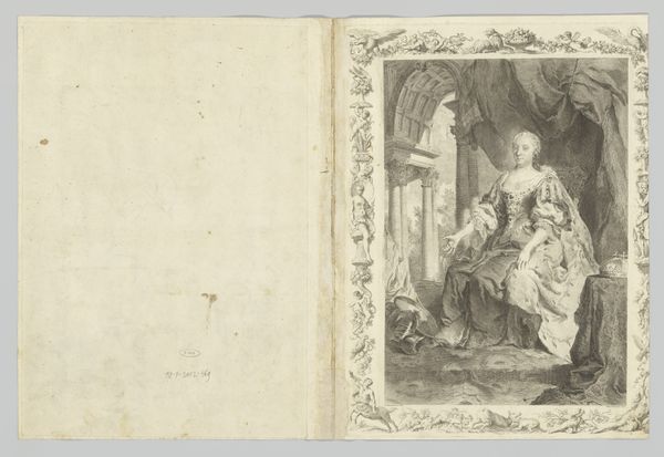 Curator: Here we have Daniel Nikolaus Chodowiecki's "Filips II ontvangt de sleutels van Jeruzalem," an engraving from 1781, found here at the Rijksmuseum. What are your initial thoughts on this particular work? Editor: Well, it strikes me as surprisingly understated. I mean, it’s the keys to Jerusalem! Shouldn't there be…more? A grander stage, perhaps, more overt drama? Curator: It's true, there’s a subtle energy. It is fascinating to think of how this scene, rendered in delicate lines, draws upon the potent symbolism inherent in the transfer of keys, suggesting control, authority, and a lineage stretching back through history. Editor: I'm captivated by that hand holding the tray, slightly shaking, with keys to power and potential bloodshed! What sort of tale is that? I wonder if the artist intended to portray Filips II as bored by this submission? It adds such an unexpectedly nuanced layer to what could have been a purely triumphal image. Curator: I see your point! The keys themselves are ancient symbols of access, of secrets revealed and authority gained. By placing Filips II so passively within the frame, Chodowiecki might subtly critique the notion of absolute power, perhaps highlighting the burdens and moral complexities of leadership, as the Dutch remember his leadership and authority with bitterness. Editor: Exactly! It subverts the typical power dynamic expected in a historical painting, nudging the viewer to reconsider what victory truly entails. You've nailed the historical interpretation there. Is this apathy or perhaps simple fatigue? It also reminds me of how powerful leaders are, in the end, as flawed as the common man or woman, after all. Curator: An interesting contrast! And while the scene depicts a specific historical moment, its themes—power, duty, and surrender—continue to resonate across centuries. Even rendered in a monochrome print, its ideas possess real depth, allowing the viewers to experience events alongside Filips. Editor: It makes me wonder about all the unseen dramas behind those seemingly simple moments. What unspoken agreements and bitter pills were swallowed by those bearing the keys? The engraving does this great job of making you think. Curator: Indeed. It provides the viewer so many different, distinct vantage points to explore! Thank you for that thoughtful reading. Editor: The pleasure was all mine, truly! It is remarkable to encounter those little sparks of creative rebellion within the constraints of traditional forms.