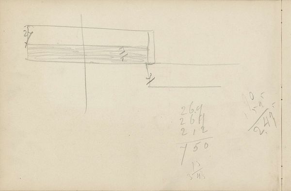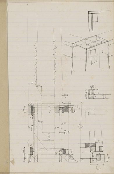 Editor: This is "Architectuurstudies" – Architectural Studies – by Carel Adolph Lion Cachet, from around 1905. It’s a pencil drawing on paper. It feels like peeking into the artist’s sketchbook; it's a very raw and process-oriented glimpse into design. What do you see in this piece? Curator: What strikes me is how this unassuming sketch reflects broader architectural trends of the period and the artist’s cultural milieu. These studies point to the burgeoning industrialization and urbanization of the Netherlands at the time. It isn't just about lines on paper; it is about a societal shift and a visual negotiation with modernity. Notice the repeated geometric forms and how the architectural details hint at both classical influences and an emerging functionalist aesthetic. Editor: Functionalist, how so? It seems kind of rough and unplanned. Curator: Precisely! That seeming roughness can be read as a rejection of purely ornamental approaches in favor of structures rooted in practicality and the necessities of the burgeoning city. Remember that architecture, then as now, wasn't just about buildings; it was about making statements about power, progress, and societal values. It seems these studies were the artist's way of thinking and perhaps of subtly critiquing the transformation around him. Consider also, for whom and for what were these new building projects commissioned? Editor: That’s really interesting. So it's like the drawing isn't just about the buildings themselves, but also about the social forces shaping those buildings? Curator: Exactly! It is a document of both aesthetic and socio-political thought. I am wondering, has it made you see the work and the era a little differently? Editor: Definitely. I was so focused on the sketch itself. Now I am going to be looking at the buildings of that era, and thinking about the context! Curator: Wonderful.