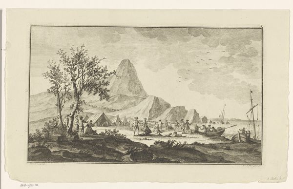 Editor: Here we have Herman Saftleven's "Flood in a Mountainous Landscape," an engraving from 1667. The detail is quite striking. I'm curious about the way the landscape dominates, yet there’s also a sense of human presence in the details. What do you see in this piece? Curator: Well, it's essential to view this within the context of 17th-century Dutch art and its relationship to land. The Dutch Golden Age saw a surge in landscape painting that wasn't just about aesthetics, but also about national identity and power. How do you see the "flood" fitting into that? Editor: That's interesting! I hadn’t considered the flood element critically. Perhaps it speaks to a constant negotiation between the Dutch and the environment? Curator: Precisely. Water management was crucial, defining not just the landscape but also Dutch society itself. Floods, like this one, were threats, but also opportunities for engineering prowess and communal action. Consider the visual language used here. Notice how even in seeming disarray, there's order, almost a surveying of the land. Who has the power in this image? Editor: So, the act of depicting the flood is itself an assertion of control, even if subtly so? It’s like the artist is saying "we see this, we understand it, and therefore, we can manage it.” Curator: Exactly. And Saftleven wasn't simply representing a flood. He was participating in a visual discourse about Dutch resilience, their ongoing struggle with nature and their success in subduing it. It reflects a broader colonial mindset, too – the desire to dominate and control. Editor: I hadn't thought about those colonial implications. It makes me consider how landscapes aren't just passive backgrounds, but active players in power dynamics. I see so much more here now. Curator: It's through understanding the intersection of history, environment, and representation that we can truly understand a work like this. What have you learned today? Editor: Definitely to think critically about landscapes not just as beautiful scenery, but as spaces loaded with cultural and political meaning. Thanks!