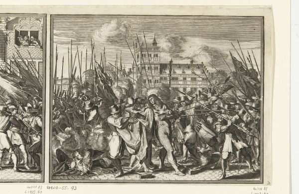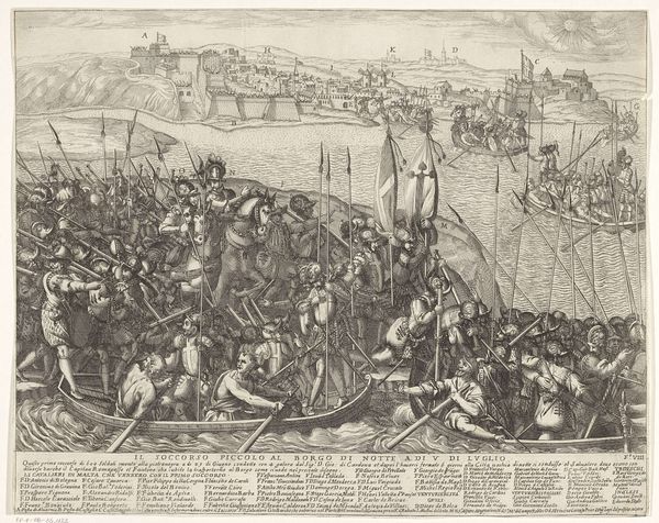 Editor: This is Agostino Veneziano's "Triumph of Scipio," a complex engraving. It feels overwhelming, a chaotic mass of bodies. What do you see in this piece beyond the immediate impression of conflict? Curator: The "Triumph of Scipio" is more than just a battle scene. Consider how the artist portrays power dynamics. Who is celebrated, and at whose expense? Whose bodies are valorized, and whose are trampled? Reflect on the social implications of depicting war as triumph. Editor: So, it's not just about the victory itself, but about who benefits from that victory and who suffers? Curator: Precisely. And how does this visual narrative contribute to the ongoing glorification of military power throughout history? This image invites us to critically examine the legacy of imperialism. Editor: I hadn't thought about it that way. It makes you question the whole idea of "triumph."