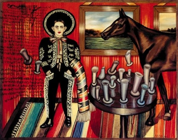 Danny Galieote’s painting, *Next in Line* portrays a cowboy preparing to ride a bucking bronco while another cowboy struggles to stay on. In mid-20th century America, the figure of the cowboy was deeply romanticized. The rodeo, as depicted here, became a spectacle, embodying ideals of rugged individualism, masculinity, and the conquest of nature. Yet, this imagery often obscures the complex realities of the West, including its history of colonialism and the displacement of indigenous peoples. Galieote’s decision to center the image on the cowboy awaiting his turn adds an element of anticipation and tension. The painting prompts a consideration of the performative aspects of identity. What does it mean to embody a certain image, and who is it for? Perhaps in this moment of waiting, the cowboy reflects on the weight of these expectations and the gap between image and lived experience. Ultimately, *Next in Line* encourages us to look beyond the surface of American mythology and examine the individual narratives that constitute our shared history.