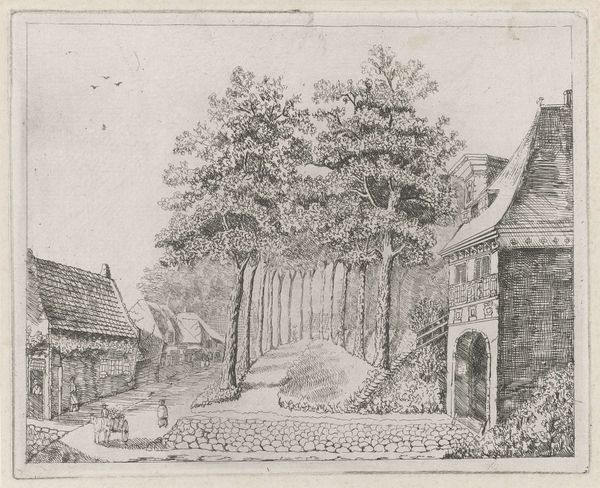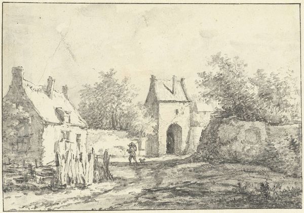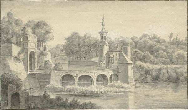 Hendrik Gerrit ten Cate made this drawing of the gateway at Zuilenstein Castle near Amerongen using pen in grey in 1833. The drawing is a study in contrasts between organic and architectural forms, shadow and light. Cate carefully balances the composition of the structures, foliage, and bodies of water that echo and complement each other throughout the picture plane. Notice how Cate uses the organic form of the tree on the left to frame the architectural structure of the gateway, creating a dialogue between nature and built environment. The horizontal emphasis of the bridge and the reflections in the water contribute to the sense of calm. The artist’s meticulous strokes invite us to consider not only what is depicted, but how it is depicted. The structure is not just seen but experienced. It is an evocative study into the interplay of forms and textures.
