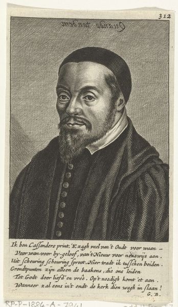 Hendrik Bary made this print of Georg Cassander sometime between 1640 and 1707. Cassander lived in the 16th century amidst the religious conflicts of the Reformation. Educated in the Netherlands, he dedicated himself to reconciling Catholic and Protestant theologies. This portrait captures Cassander's commitment to bridging divides. His clothing reflects the somber tone of a scholar, while the inscription beneath the image expresses a desire for unity. It translates as, "When will the church finally beat that path in?" In this way, the print immortalizes Cassander's intellectual pursuits, but also hints at the emotional toll of working toward religious reconciliation in a fractious time. Prints such as this one allowed for the broad circulation of Cassander's image and ideas in a society grappling with shifting religious identities, and remind us of the individuals who sought common ground during times of deep division.