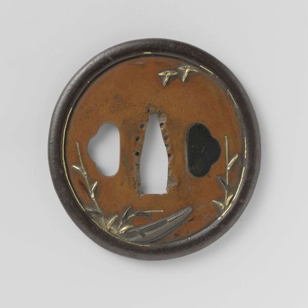 Editor: Here we have a sword guard, or Tsuba, crafted sometime between 1801 and 1850 by Joka. It’s made of metal, silver, and carving, and is currently housed at the Metropolitan Museum of Art. I’m struck by the contrast between the dark metal and the brighter, almost cartoonish depiction of the animal figure. How do you approach a piece like this? Curator: The key, for me, always lies in the material processes. Consider the labor involved in crafting this tsuba. We have the base metal, likely iron, carefully worked and carved. Then, the application of silver, perhaps inlaid or overlaid, and finally the details added through further carving and potentially patination or other surface treatments. Each step speaks to a specialized skill, embedded in a specific socio-economic context. What do these material choices tell us about consumption at the time? Editor: I see what you mean. So, it's not just about the image itself, but understanding the means of its production, who had access to these materials and skills? What was the significance of adorning a functional object with such artistry? Curator: Exactly. The tsuba moves beyond mere function. Who was Joka, the maker? Were they part of a larger workshop, and did they cater to a specific clientele, perhaps samurai or wealthy merchants wanting to signal prestige through elaborate ornamentation? Also, consider the iconography – the animal depicted. Is it a lion-dog or some mythical hybrid? What cultural values might this represent, and how would they be understood by the sword’s owner and wider society? We could explore the supply chain of silver to infer international commercial context for art and weaponry production in Japan during that era. Editor: So, analyzing the materials and production opens a window into a whole network of social, economic, and cultural relationships. I never thought about it that way. Thanks for this insight! Curator: It’s a reminder that even small objects carry vast amounts of information when we attend to their material existence and the processes that brought them into being.