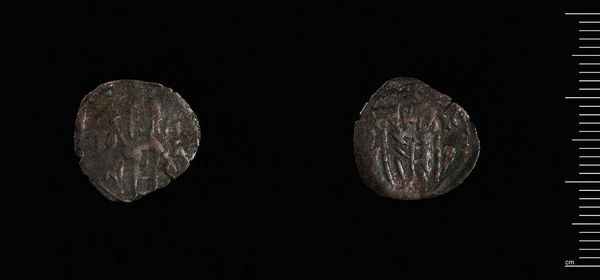 Curator: This, everyone, is a Copper Follis, or Tornese, of John VII. A tiny thing, really—less than a gram. Editor: It feels ancient, doesn't it? Sort of grubby, like something pulled from the earth after centuries of secrets. Curator: It’s been resting in the Harvard Art Museums. Coins like this are more than just currency. They tell us about the economy, the iconography, and the reach of power during John VII’s reign. Editor: I like how worn it is. It’s like holding a tiny piece of history, worn smooth by countless transactions, whispering stories of daily life. Curator: Exactly. Each mark, each imperfection, reveals something. It connects us to the past in a tangible way. Editor: It makes you wonder, doesn't it, about the hands it passed through? What did they buy with it? What were their dreams? Curator: Indeed. It's a small object with an outsized story. Editor: It’s like a poem pressed into metal.
