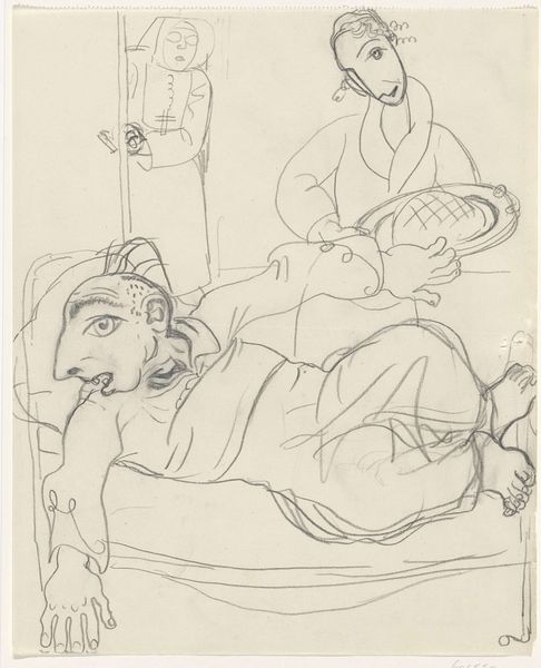 Editor: Here we have "Party Goers" by Tia Peltz, a pen and ink drawing of several figures. There's something about the looseness of the line and their somewhat blank expressions that makes me feel a bit uneasy. What do you see in this piece? Curator: I see a modern ritual. Note how the figures are arranged. They almost mimic a classical grouping, reminiscent of scenes of symposium or social gathering stretching back millennia. Do you see how Peltz uses the line – its presence and absence – to suggest both connection and isolation? Editor: I do. It's like they are all in the same room, but not really present with each other. Is that something you think is intentional? Curator: Absolutely. Think about parties, gatherings, all those social spaces. What symbols persist? Even here, abstracted shapes imply things scattered on the floor. Remnants of interaction. These objects represent shared space but perhaps highlight what’s leftover more than what's gained during connection. Look at how some faces are barely formed. Is that a commentary on identity, obscured in social performance? Editor: That’s a compelling point. The obscured faces could symbolize a loss of individuality, where everyone is trying to fit a certain mold during these gatherings. It does make you think about how much of ourselves we present versus conceal in these moments. Curator: Exactly! Peltz uses this visual language to explore our own anxieties and aspirations. Do we find ourselves reflected in these Party Goers? Perhaps. Editor: I hadn’t considered it that way initially, but thinking about the visual cues as representative of universal experiences makes a lot of sense. Thanks for sharing your perspective! Curator: My pleasure. Art helps us to recognize patterns and the recurring human dramas. And, as viewers, we are just as important at activating that cultural memory as the artwork itself.