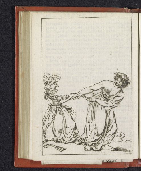 Editor: So, this drawing is titled "Het Nieuwe Licht," or "The New Light," created around 1795-1796 by Pieter van Woensel. It's a combination of ink, coloured pencil, and what looks like watercolor on paper. I'm struck by how this image seems to blend classical figures with Enlightenment ideals. What jumps out at you? Curator: Well, seeing "The New Light" through a historical lens, it really speaks to the cultural and political upheaval of the late 18th century. Note the presence of the allegorical figure of enlightenment illuminating the texts below and notice that she stands among busts of ancient philosophers like Socrates, Epicurus, and Pyrrho. She illuminates books of enlightenment philosophers such as Voltaire, Newton, Locke, and Rousseau. Editor: Ah, yes, the names on the books! It's quite direct. But why use classical figures to represent this new light? Curator: Exactly! Neoclassicism was the visual language of revolution. By using these familiar figures, the artist aimed to lend authority and legitimacy to the revolutionary ideals. It's fascinating how artistic movements are used for particular purposes isn't it? It begs the question, what made this visual vocabulary so impactful? Editor: I see. So, it’s not just about the artist's individual expression, but about tapping into a visual language that resonates with the public and reinforces certain ideologies. This historical background really changes my understanding of it. Curator: Precisely! Considering the cultural context and intended audience allows for a far deeper connection. Also note that the image presents "Light", it creates "readers," and establishes philosophical and scientific traditions. Each are essential to public awareness and political mobilization in an age of revolution. The very materiality—ink and pencil—speaks to accessibility and distribution. Editor: That's a really helpful perspective. Now, I appreciate how much this artwork engages with its contemporary socio-political environment. Thanks! Curator: It's been a great experience. The pleasure is all mine.
