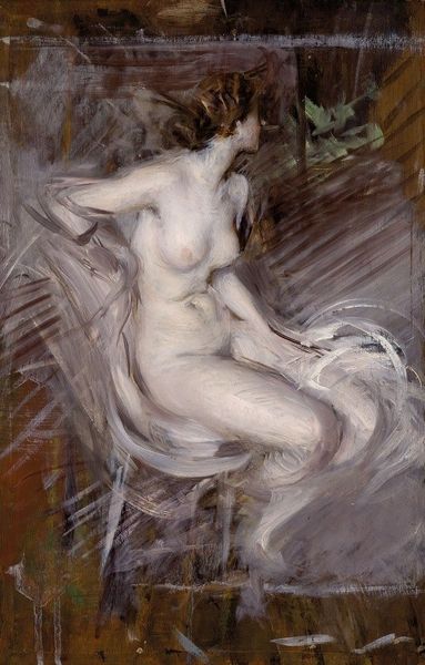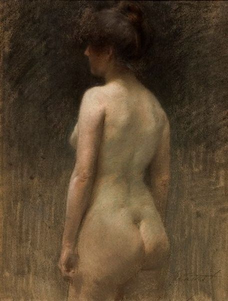 William Etty painted this work with oil on canvas. The painting presents a female nude kneeling against a backdrop of deep reds and browns. Her posture and the way she covers her face, create a sense of introspection and vulnerability. Etty masterfully uses light and shadow to model the figure, giving her form weight and volume. Note how the light delicately outlines her back, highlighting the smooth curve of her spine and the soft roundness of her shoulders. The use of color is strategic, with the warm tones of her skin contrasting against the darker, more turbulent background. This contrast not only draws our eye to the figure but also heightens the emotional tension of the scene. Etty’s composition is not just about depicting the female form, but also about exploring themes of emotion, privacy, and the human condition. Her posture suggests a moment of deep personal reflection, inviting us to contemplate the complexity of human emotions.