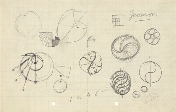 This is Mathieu Lauweriks's "Ontwerpen voor een broche," or designs for a brooch, created with graphite on paper. Lauweriks was a Dutch architect, designer, and theorist, deeply involved in the search for universal principles in art and architecture. His approach was influenced by a blend of theosophy and geometric principles, reflecting a broader cultural interest in spirituality and science. His designs often incorporate geometric patterns, meant to convey a sense of harmony and order, a visual language intended to reflect deeper truths about the universe. Brooches, historically worn by all genders, have long served as markers of identity, status, and belonging. Lauweriks’s design moves away from traditional representational forms, towards an abstract ideal. Consider, in this context, how the act of adornment can transcend mere decoration, becoming a means of expressing one's connection to larger social structures. It asks how we can find meaning and express identity through the universal language of form.