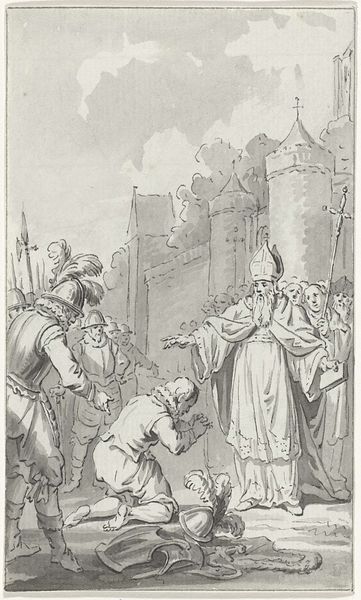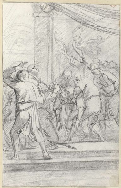 Editor: So, this is Jacobus Buys' pen and ink drawing, "The Iconoclasm," made between 1784 and 1786. It feels… intense, chaotic. What jumps out at you when you look at this piece? Curator: What I find compelling is the historical moment Buys chose to depict, and even more so, the context in which he created this work. The "Beeldenstorm" – the iconoclastic fury of 1566 – was a pivotal moment in the Dutch Reformation, marking a violent rejection of Catholic imagery in churches. Editor: Right, I see that destruction represented pretty vividly here. But Buys made this drawing over two centuries later. Why revisit such a turbulent event then? Curator: Precisely. Buys was working during a period of Enlightenment ideals, where notions of religious tolerance and freedom of conscience were gaining prominence. His depiction of the iconoclasm, almost romanticizing its violence, likely served to fuel contemporary debates about religious authority and the role of the state. The drawing acts as a mirror reflecting anxieties around public order and religious expression in his own time. What do you make of the artist including a clear image of a broken bishop? Editor: That image definitely feels pointed. Highlighting that religious leader brings to the fore the struggle for power and challenges ideas of the Church's authority during this earlier moment in time. So Buys isn't just illustrating history; he's making a statement about his own era. Curator: Exactly. He’s engaging in a visual argument, prompting viewers to consider the legacy of religious conflict and the ongoing negotiation between faith, politics, and the public sphere. Editor: It's amazing how a drawing can be so much more than just an illustration. I’ll never look at historical depictions the same way again. Curator: Indeed, every brushstroke, every composition, reflects a complex interplay between the past and the present. It really forces one to analyze not just what is shown, but why and when it is being shown.