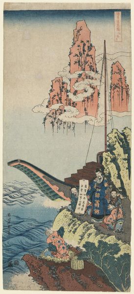 This is Kobayashi Kiyochika's woodblock print of Urami Waterfall. Notice the immediate visual experience; the play between dark, enveloping rock formations and the bright, almost ethereal waterfall. This contrast creates a sense of depth and invites an emotional response of awe and curiosity. Kiyochika masterfully uses line and composition to create a dynamic scene. The waterfall, a vertical cascade of white, is framed by the dark, jagged rocks. These elements function within a historical context of Japanese landscape prints, yet Kiyochika introduces a unique semiotic system. The figures, small and seemingly insignificant against the grandeur of nature, serve as signs of human presence within a powerful natural world. Consider how the formal qualities of the artwork extend into a larger cultural and philosophical discourse. The waterfall, with its constant flow, can be interpreted through a poststructuralist lens as a symbol of ever-changing meanings. The artwork challenges fixed meanings, suggesting that nature, like art, is a site of continuous interpretation and re-interpretation.