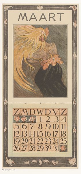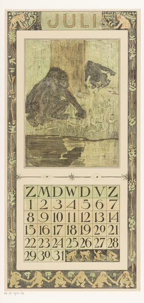Theo van Hoytema made this calendar page for July with lithographic ink on paper, and it feels both precise and playful. Look at the squirrel: the dark brown ink thins and thickens, giving it a furry texture almost like you could reach out and touch it! It’s like Hoytema is thinking out loud with his marks, allowing the medium to show itself without fuss. The ink’s not trying to hide; instead, it’s part of the story. The way he frames the calendar grid with branches is also interesting – it’s both graphic and organic. The stylized squirrels that adorn the top and bottom give the piece a lovely decorative quality. Hoytema’s work reminds me of the Vienna Secession artists, like Gustav Klimt, who combined fine art with decorative arts. Like them, he’s blurring boundaries, inviting us to see how art can be part of everyday life. It's a celebration of seeing and thinking through making.
