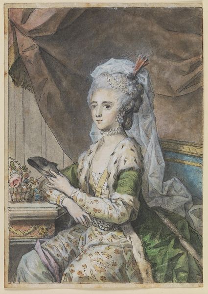 Georg Friedrich Schmidt made this portrait of his wife around 1762, using pastel and charcoal on paper. These are interesting materials because they occupy a middle ground. Unlike oil paint, with its high status and technical demands, pastels and charcoal are accessible and immediate. Note how Schmidt makes full use of the paper's texture, allowing it to show through the pastel layers, creating a sense of immediacy. It feels almost like a sketch, yet the detail in the face and clothing suggests otherwise. Pastel is pure pigment bound into a stick, allowing for vibrant colors and soft, velvety textures. Look at the lace around her neck, the subtle blush on her cheeks. The choice of these materials gives the portrait an intimate feel, more like a study than a formal commission. By focusing on the inherent qualities of the pastel, paper, and charcoal, Schmidt elevates what might have been a simple domestic scene into a work of art. It blurs the lines between personal expression and the skilled application of materials, reminding us that even the most everyday materials can yield extraordinary results.
