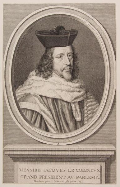 Curator: Here we have William Faithorne the Elder's portrait of John Bulwer, an English physician and writer. Editor: The mood strikes me as rather somber. The stark contrasts of light and shadow, the introspective gaze...it conveys a sense of serious contemplation. Curator: Faithorne was a prominent printmaker, and this engraving showcases his mastery. Bulwer was a fascinating figure, advocating for the education of deaf individuals. This portrait served as a frontispiece for one of his books. Editor: It's interesting to consider the social implications. Access to knowledge, especially for marginalized communities, was a radical idea. How did Bulwer challenge the ableist structures of his time? Curator: He sought to integrate the deaf into society. His work certainly challenged prevailing attitudes, and this portrait perhaps aimed to project an image of respectability and intellectual gravitas. Editor: It makes you wonder about the politics of representation—who gets to be seen, and how. Thanks for illuminating that, I see it differently now.