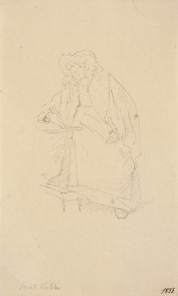 Curator: Christen Købke’s "Ung pige siddende ved et vindue," made between 1810 and 1848, offers us a glimpse into a private world rendered in delicate pencil strokes. Editor: My initial impression is of quiet contemplation. The young woman seems poised between the interior space and the world outside that window, almost ethereal. Curator: The technique is indeed crucial here. Observe the visible labor, the layering of pencil, the tentative lines. What does it reveal about artistic practice at the time? About the artist’s intent? Was it simply a study, or something more intentional? We should also consider that paper and pencils, while common, were commodities, impacting accessibility and thus the creation process itself. Editor: Absolutely. And think about the sitter herself. Who was this young woman? The lack of idealization in her features suggests a level of intimacy—perhaps a family member or someone from Købke’s close circle. How did class, gender and social status affect her position, quite literally seated by the window but figuratively maybe at a threshold in her own life? Curator: We can analyze the window, of course, in terms of its materiality and construction. Windows themselves were a sign of prosperity in certain eras, a material culture point. Its placement and prominence speaks to domestic architecture during that time as well. Editor: Right, and the window as a symbol. Think about art history, windows constantly represent transition, longing, and connection or disconnection with the outside world. Here, it emphasizes this young woman's liminal position and perhaps even the limited choices available to her as she gazes at the world through panes of glass. Curator: Ultimately, thinking about the choices around the materials offers interesting interpretations. Did he want to democratize art, making it accessible? Or, by making such works did he seek an alternative system away from royal art or the Academy? Editor: This drawing is such a poignant testament to the power of the everyday. I see an opening for discussions of identity, interiority, and female experiences within that historical context, even with minimal material. Curator: Absolutely. Seeing Købke’s choice of material is also about seeing his art production and creative choices as part of its specific time and context.