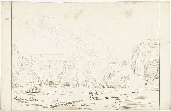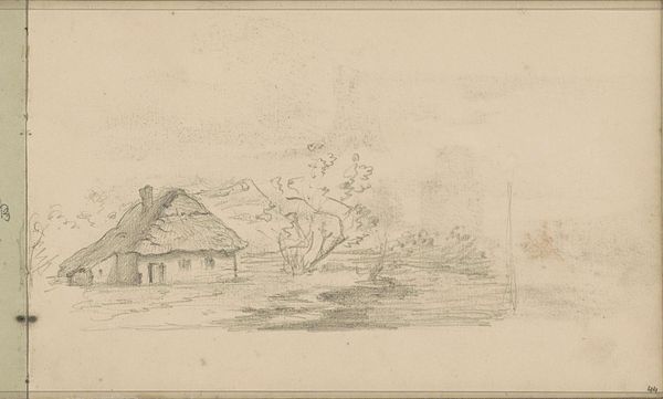 This pencil drawing by Johannes Tavenraat depicts figures on a farmyard in Materborn, a village in Germany, sometime in the mid-19th century. It gives us a glimpse into rural life, a subject of great interest during a period of rapid urbanization in Europe. The sketch focuses on the everyday, showing a modest farmhouse, a few figures, and farm animals. The informality suggests a desire to capture the unvarnished reality of country life. This was a period when artists began to look outside traditional academic subjects for inspiration. The image can be situated within broader cultural trends, such as the rise of landscape painting and an increasing interest in rural life as a source of national identity. Art historians might consult census records, agricultural surveys, and local histories to learn more about the social and economic conditions in Materborn at the time. Ultimately, this drawing reminds us that art is always a product of its time, shaped by the social, economic, and cultural forces at play.