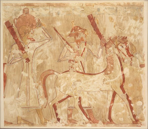 Nina de Garis Davies created this watercolor facsimile, "Syrians Bringing Vessels and Weapons, Tomb of Rekhmire," to document ancient Egyptian art. Davies, working in the early 20th century, captured a scene reflecting the complex power dynamics between Egypt and its neighboring regions. This image portrays Syrians bearing tribute, highlighting Egypt's dominance and the resources extracted from other cultures. These figures, distinguished by their dress and the items they carry, embody the intersection of trade, diplomacy, and military might. The vessels and weapons they present are not merely gifts but symbols of submission, reflecting the socio-political hierarchy of the time. What does it mean to have your cultural identity reduced to the role of a tribute bearer? Davies' work, while intended to preserve, also presents an opportunity to reflect on the gaze through which history is recorded and whose stories are prioritized. Think about how ancient power structures continue to influence contemporary relations between different cultures and nations.