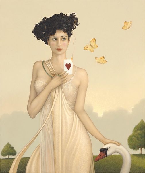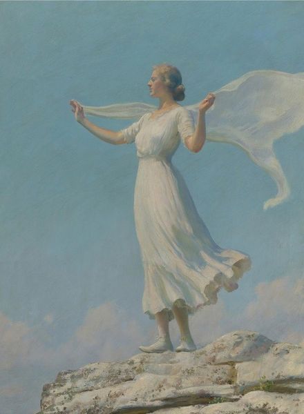 Bo Bartlett made this painting, Things Don’t Stay Fixed, with oil paint, sometime after 1955. There’s something about the way the figure floats in this work that hints at a feeling of ethereal movement, a gentle dance of color and form that’s really compelling. Looking closely, you can see how Bartlett builds up the image with delicate layers of paint. The sky, full of blues and whites, feels almost like a watercolour, soft and dreamy. And then there are these flowers scattered about – each one painted with such care. For me, it’s how the artist handles the texture that gives the piece its magic. The smooth surface makes the scene feel both real and unreal at the same time. The woman's yellow dress, and the light that falls on it, reminds me a little bit of Andrew Wyeth, another painter interested in capturing the quiet moments. "Things Don’t Stay Fixed" is a reminder that change is the only constant.