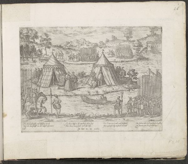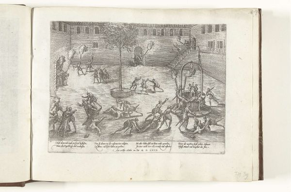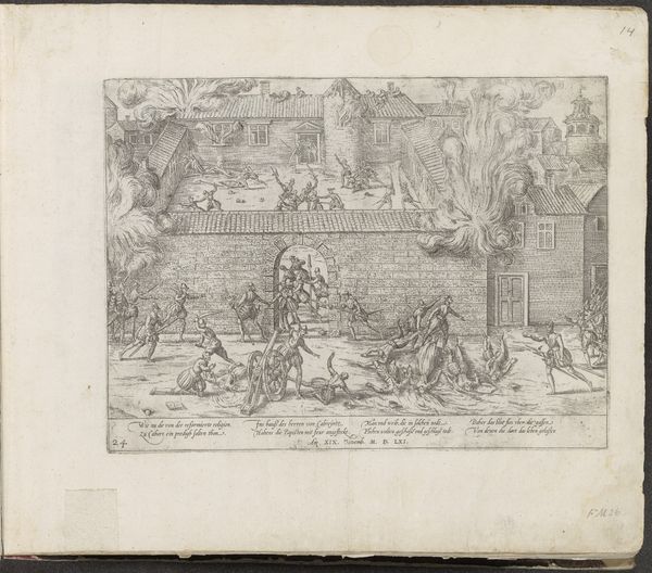 This engraving by Frans Hogenberg depicts the Huguenot assault on a monastery in Nîmes in 1567. The stark courtyard, dominated by the central image of figures being thrown into a well, evokes primal fears of enclosure and vulnerability. The act of throwing people into wells— a motif echoing through history, from ancient sacrificial rites to medieval punishments—is laden with symbolism. Water, often seen as a source of life and purification, here becomes an instrument of death and desecration. This gesture of violence stirs deep-seated anxieties about the fragility of life. Consider how similar acts of desecration appear in ancient Mesopotamian depictions of war, where the destruction of sacred spaces was a means of psychological warfare. These acts tap into the collective memory of cultural trauma, stirring subconscious fears. This image functions as a potent reminder of the cyclical nature of violence and the enduring power of such symbols to evoke emotional responses across centuries.