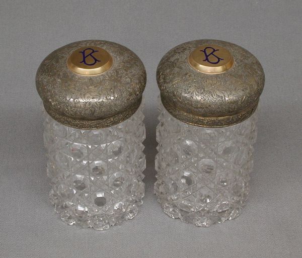 Editor: We're looking at a pair of silver spice boxes crafted by Johann Christoph Stenglin between 1738 and 1750. They're beautifully ornate. How do you read the visual language of these objects? Curator: Considering a formalist approach, these spice boxes are compelling examples of Rococo artistry. Observe how Stenglin orchestrates form: the symmetrical yet undulating contours, the delicate engraving across the surfaces. Do you perceive a hierarchy within the ornamentation? Editor: I think so. The lids have a more elaborate central design that draws your eye, compared to the simpler repeating patterns around the sides. Is that a conscious effort to create visual interest? Curator: Precisely. Stenglin employs contrast – a dense, contained pattern on the lid versus a more dispersed design on the body – guiding our gaze and structuring the visual experience. Note, too, the materiality. How does the reflective quality of the silver contribute to the overall impact? Editor: It makes them seem lighter, almost ethereal, despite being solid metal objects. The light enhances the curves and carvings, really highlighting the texture. Curator: Indeed. The play of light and shadow across the silver surface articulates the complex forms, reinforcing the Rococo aesthetic of dynamism and ornamentation. Considering its purpose, how does the decoration alter our perception of the spice box itself? Editor: It elevates it beyond a functional object. The intricate detail turns it into a miniature sculpture, a work of art in its own right. Curator: An astute observation. By examining elements such as form, contrast and materiality, we discern how the spice box transcends utilitarian purpose, transforming into an exemplar of artistic expression. Editor: I now understand how closely observing those formal elements unlocks a much richer appreciation of the piece. Thanks for guiding me through that!