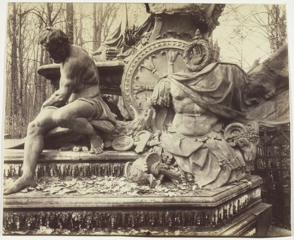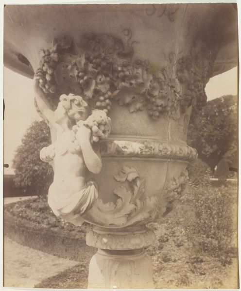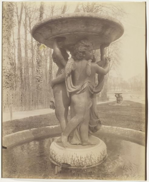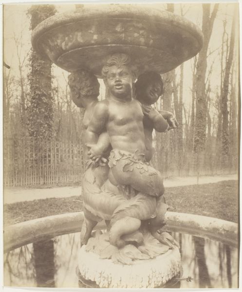 Eugène Atget made this photograph of a fountain in Versailles using an early photographic process. The sepia tone comes from the printing-out paper he favored, a material that subtly renders the stone texture and the fountain's sculpted forms. Atget was interested in documenting the architecture and material culture of Paris and its surroundings, and his choice of subject here—a fountain adorned with cherubic figures— speaks to the enduring legacy of craft traditions in France. The fountain itself is a product of skilled labor, from the quarrying of the stone to the carving of the decorative elements. Atget’s image captures not just the object, but the way in which human hands have shaped the environment. Consider, too, the labor involved in maintaining these formal gardens. Atget's photographs like this draw our attention to the intersection of art, craft, and the social context in which they exist. He reminds us that even seemingly timeless works are rooted in specific moments of production.