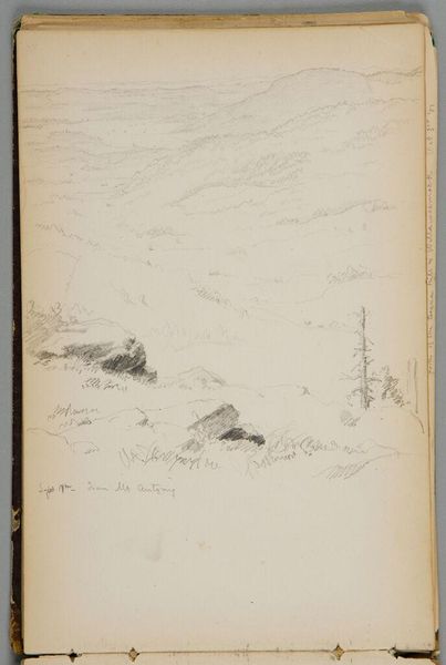 Curator: This is Sanford Robinson Gifford's "On Round Lake, New York." Note the delicate pencil work capturing a serene landscape. Editor: It evokes a sense of solitude, doesn't it? The sparse lines emphasize the vastness of the lake and the quiet mountains. Considering Gifford was part of the Hudson River School, I wonder how his landscapes reflected the socio-political currents of his time, specifically regarding expansion. Curator: Indeed, but let's appreciate how the composition leads the eye; the horizontal lines of the lake and mountains create a sense of balance, while the textured brushwork of the trees provides visual interest. The work is a fine example of tonalism, wouldn't you say? Editor: True, the muted tones create a peaceful ambiance. However, I see it as more than just an aesthetic exercise. Round Lake, like many landscapes, was likely undergoing changes due to industrialization and tourism. Did Gifford’s art support the popular nineteenth-century narrative of Manifest Destiny or did it promote counter-narratives about preservation? Curator: That's a valid interpretation, but it’s interesting how much he achieved with so few lines. Perhaps its openness invites the viewer to find their own meaning. Editor: Perhaps. It certainly gives us space to consider its place within broader histories of land use and representation.