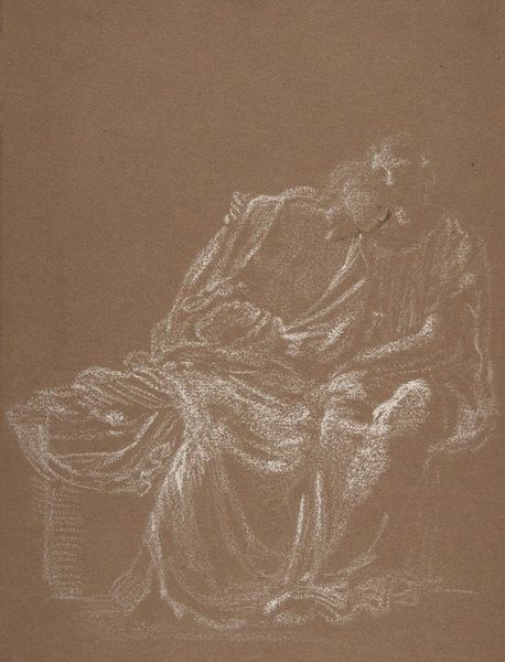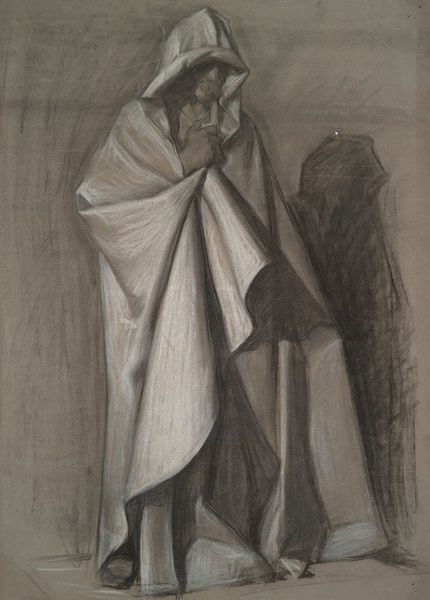 Evelyn De Morgan made this drapery study in the late 19th or early 20th century with chalk on brown paper. As a preparatory drawing for her painting ‘The Love Potion,’ this study offers insight into the academic methods of Victorian art institutions and the cultural narratives they reinforced. The intense focus on drapery reflects the period's emphasis on classical traditions and technical skill. De Morgan, a student of the Slade School of Fine Art, uses a Renaissance technique of ‘disegno,’ a highly skilled drawing method, to demonstrate her mastery of form and detail. But while she was working within a traditional academic framework, she was also involved in the Arts and Crafts movement. De Morgan’s painting is a rich site for socio-historical analysis that shows the complex institutional and social structures that impacted her work. Primary sources, such as exhibition reviews, personal letters, and institutional records, can provide additional context for interpreting her artistic practice.
