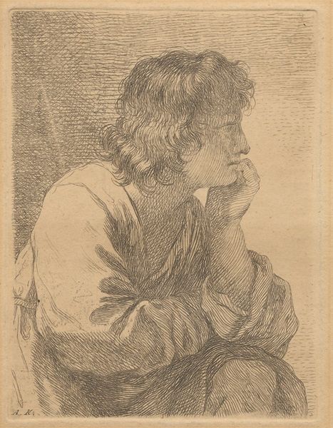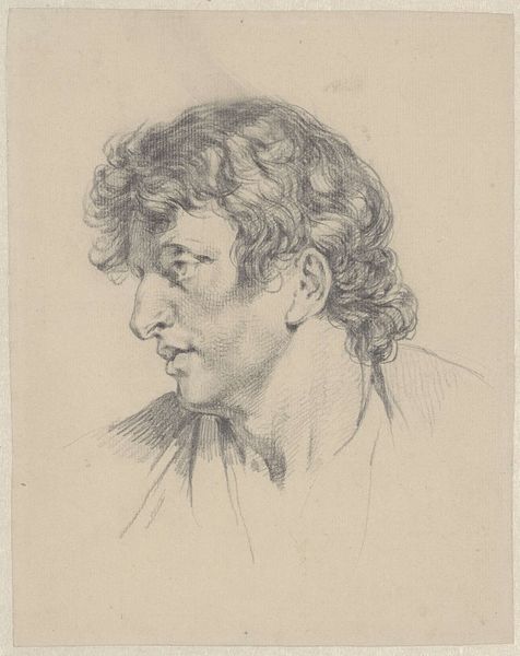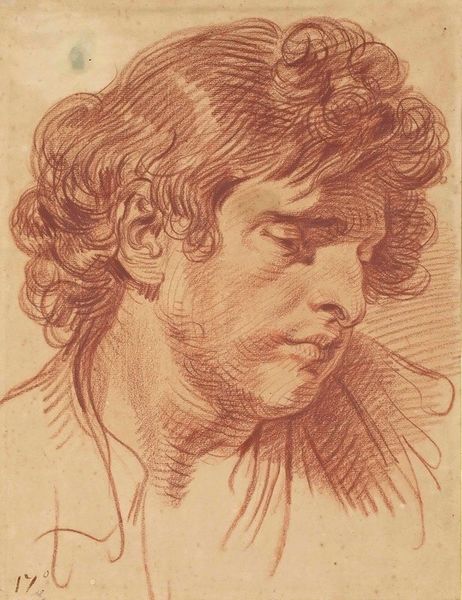 Editor: Here we have Jean-Baptiste Greuze's charcoal drawing, "The Ungrateful Son," from around 1770. It strikes me as a powerful, yet unresolved expression of... what? Resentment, maybe? What do you see in this face? Curator: Ah, Greuze. He's poking at the raw nerves of family drama, isn’t he? It's not just resentment, though that's certainly in the mix. Look at the way his brow furrows – it suggests conflict, internal turmoil, perhaps even regret. Do you notice how the light catches the side of his face? Editor: Yes, it almost sculpts him, highlighting that furrow. It feels so immediate, like a captured moment. Is he really supposed to be ungrateful? Or just conflicted, as you say? Curator: The title throws shade, doesn’t it? Makes you want to argue the poor chap's case. But remember, Greuze was a master of moralizing genre painting. He liked a good, loaded story. The messy cross-hatching of the charcoal only enhances the feeling of inner struggle. Think of him as a stage actor, caught between duty and desire. The son could have had high hopes and now feels disappointed that his expectations haven't been met. What does the work suggest to you about father and son relationships today? Editor: It makes me think about all the unspoken expectations within families. You know, those things that never get said but hang heavy in the air. Curator: Precisely! Greuze nails that uncomfortable truth. His lines feel so free, so impulsive, it's easy to miss the subtle staging, the calculated chaos that reveals so much about human nature. A beautiful example of a history painting created with charcoal in portrait style. Editor: This has totally shifted how I see it. I was stuck on the 'ungrateful' label. Now I realize he is fighting with that definition. Curator: And that's the magic, isn’t it? A drawing that draws you in, makes you question, and leaves you wrestling with your own 'ungrateful sons,' both literal and metaphorical!