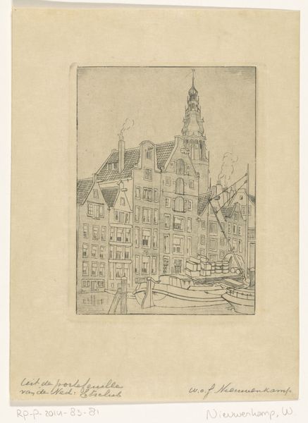 Willem Wenckebach created "De Gelderse Kade te Amsterdam" using pen and ink on paper. Notice how the composition of the image is structured around a contrast between linear precision and atmospheric fluidity. Wenckebach meticulously renders the architectural facades and the boats in the foreground with fine, deliberate lines, which gives clarity and solidity to these elements. This contrasts with the freely drawn clouds, which introduces a sense of movement and ephemerality to the scene. The artist plays with texture through varied line work, denser hatching in the buildings and water against softer, more dispersed strokes in the sky. The drawing may invite us to consider the dynamic interplay between the tangible and the intangible, suggesting a tension between the enduring structures of city life and the transient qualities of nature. This functions as a discourse on how we perceive stability versus change.