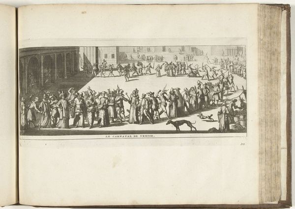 Editor: Here we have "Optocht na de kroning van Ferdinand II tot Rooms koning, 1619" by Frans Hogenberg, made between 1619 and 1621. It’s an engraving – ink on paper – depicting a procession, full of people. It feels incredibly detailed but also quite dense. What can you tell me about how this image was produced and what was its purpose? Curator: Considering the labor involved in creating this engraving – the skilled hand cutting those fine lines into the metal plate, the physical printing process, and the sheer number of impressions likely produced – it was clearly meant for wide dissemination. How does this production process shape our understanding of the event it depicts? Was it made for the elites in the procession, or for popular consumption and how does the intended consumer dictate choices made in production and design? Editor: So, the choice of engraving and printing implies a broader audience beyond the elite circles directly involved in the coronation? Curator: Precisely. Engravings like this one served as a form of visual news. Think about the social context of early 17th century Europe, riddled with religious and political tensions. How might this mass-produced image function as propaganda, shaping public opinion on Ferdinand II’s reign and, by extension, on the authority of the Holy Roman Empire? Note the detailed depiction of wealth, arms, and grandeur in the printed image – would those things affect consumers in that period? Editor: I see what you mean. It's not just a record; it’s a crafted message, disseminated through a very specific material process to a particular social body. So much to consider around a printed picture. Curator: Indeed, understanding the materials, production, and distribution illuminates how art participated in and reflected the society around it. These considerations make analyzing art so enlightening.