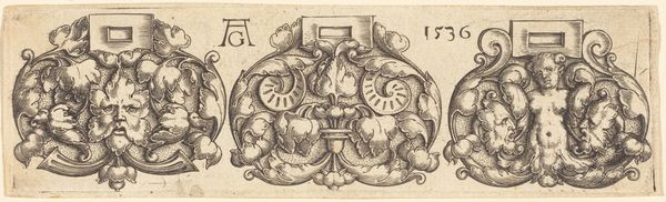 Curator: Look at this engraving, likely from the 17th century, titled "Brandend hart met pijlen in een geornamenteerd ovaal met putti en een vogel," or roughly, "Burning Heart with Arrows in an Ornamented Oval with Putti and a Bird." It is rendered with lines, attributed to an anonymous artist. Editor: It strikes me as darkly romantic, almost melodramatic. The heart, pierced by arrows and aflame, certainly suggests intense passion or perhaps even suffering. The oval frame packed with religious iconography seems both celebratory and commemorative. Curator: The symbolism here is potent. The flaming heart often represents divine love and charity. But why arrows? Editor: I think we have to dig into socio-cultural readings here, and it gets complicated: the arrows represent sacrifice, perhaps. There's definitely an exploration of the heart's subjugation through, let’s face it, some fairly macho Christian dogma here, isn’t there? What kind of political symbolism might we read out of the burning heart being pierced by masculine shafts? Curator: Perhaps. What about its composition? The heart rests on what appears to be a book – scripture perhaps – beneath it is an eagle, while winged putti float around a bishop’s mitre at the apex of the oval frame. What could that book possibly signify? Is it a marker of cultural significance or religious one? How do the other figures shape that potential argument? Editor: The book roots that passion to religious scholarship or learning – something prescribed, not an anarchic thing. The Eagle anchors us to temporal power or an empire? The eagle and mitre and little angels reinforce the notion that burning religious passion isn’t some abstract feeling but inextricably woven with cultural and political power. Curator: Agreed. It makes the artwork feel less purely devotional and more… entrenched, doesn’t it? Even if it seems religious at first glance, this is really also about institutional power and identity, visualized through these emblems and symbols. Editor: Exactly. The engraving isn't merely an expression of religious feeling. It's making an argument about authority, knowledge, and belonging, all packaged within this ornate, baroque frame. I come away now with questions of how faith intertwines with the patriarchy… food for thought! Curator: Indeed. This piece truly pushes us to reconsider the interrelation between devotion, knowledge, and social hierarchies in the art of the era.