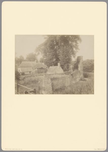 This photograph, *Gezicht op het Huis Bergh te 's Heerenberg*, was produced by an anonymous artist working for Monumentenzorg. It captures the house in tones of sepia, like a memory fading into the past. The tones here are fascinating in their range, from the ghostly whites of the sky to the almost impenetrable darks of the foliage. It's a study in light and shadow, where the building itself seems to emerge from the landscape, or perhaps retreats into it. Look closely at the surface of the stone, how the light catches the roughness, giving it texture and depth. This isn't just a picture of a building; it's about how light and shadow transform it. The overall effect reminds me a little of some of Atget's photographs of Paris - a similar sense of documenting the past with a kind of quiet, understated reverence. It's a reminder that art is often about looking closely, seeing the extraordinary in the ordinary, and embracing the ambiguities that arise.