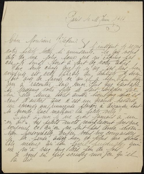 This letter to Philip Zilcken was penned by Isaac Israels in Paris. It reveals the social dynamics of the art world at the time. Israels, a Dutch Jewish artist, writes from the Grand Hotel, a space that reflects the intersection of class and cultural exchange. He mentions being honored by a group of French artists upon his arrival, suggesting a welcoming, yet potentially fraught, integration into the Parisian art scene. Israels touches on themes of acceptance and recognition when he writes that he initially planned to leave the country because he had not achieved anything, but is ‘not dissatisfied after all’. The letter hints at the complex negotiation of identity and belonging that many artists faced. Israels' emotional state seems delicately balanced between ambition and the desire for recognition within a specific cultural context. This letter serves as a reminder of the personal and emotional dimensions of artistic creation.